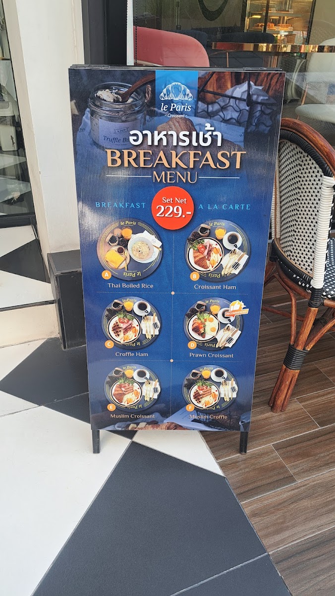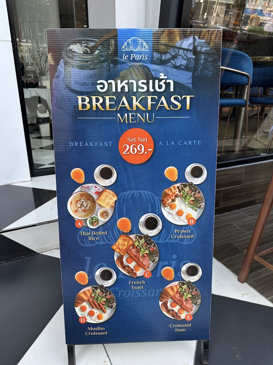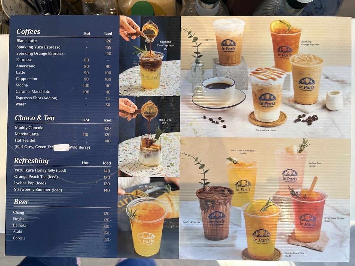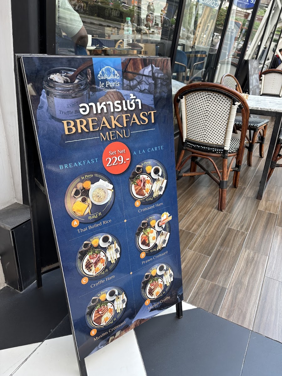 Le París Asoke is a charming coffee shop tucked away in Bangkok’s bustling Khlong Toei district, offering an authentic Parisian café experience. Its highlight is undoubtedly the croissants, praised by many as the best in Thailand—flaky, buttery, and reminiscent of a true Parisian bakery. The menu extends beyond pastries to include a solid breakfast selection featuring egg and ham on toast, satisfying and well-prepared. The drinks menu complements the food excellently, with standout items like the refreshing iced peach tea and quality coffee, although small extra charges like soy milk may catch some off guard.